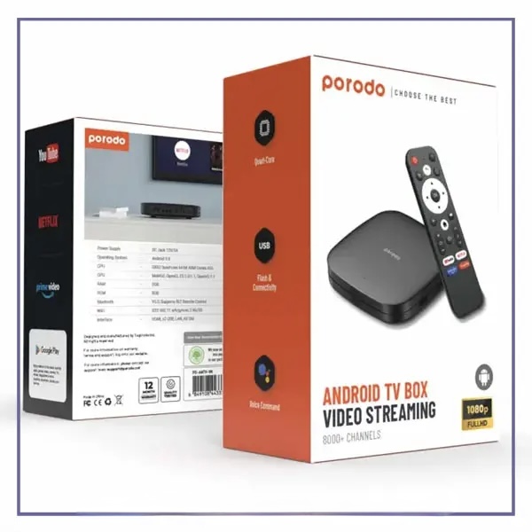 اندروید باکس Porodo PD-ANTVB یک راه ساده و مقرونبهصرفه برای تبدیل تلویزیون ساده به یک مرکز سرگرمی هوشمند است. اگر میخواهید فیلم و سریال، یوتیوب، موسیقی، مرور وب یا حتی بازی روی تلویزیون را تجربه کنید – این دستگاه انتخاب مناسبی است.