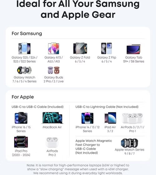 این شارژر USB-C با طیف وسیعی از دستگاهها سازگار است؛ از گوشیهای اندرویدی و آیفون گرفته تا تبلتها، پاوربانکها و لپتاپهای مجهز به درگاه Type-C. اگر بهدنبال یک شارژر همهکاره هستید که نیاز چندین دستگاه را پوشش دهد، Anker A2692 انتخابی هوشمندانه خواهد بود.