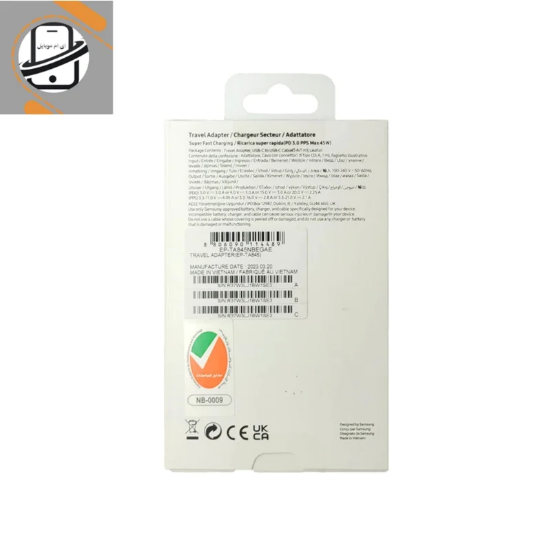 مشخصات خرید و قیمت شارژر سامسونگ s22پلاس/samsung S22 Plus-شارژر 45 وات S22 PLUS-از آنجایی که شارژر تحت عنوان یک منبع تغذیه، انرژی مورد نیاز برای باتری تلفن همراه را مهیا مینماید، می بایست کیفیت بالایی داشته باشد و از باتری تلفن همراه حفظ نماید. سامسونگ در ساخت شارژرهای خویش بهاین مورد دقت ویژهای کرده و شارژرهایی با فناوری سوپر فست ساختوساز مینماید. یکیاز این شارژرها/شارژر samsung 45w میباشد که با اسمهای متعدد شارژر S22، شارژرS21 Ultra و... نیز شناخته می شود. این شارژر قابلیت و امکان شارژ سریع داراست و در مدت کوتاهی، با سرعت بالا، موبایل را شارژ مینماید.
