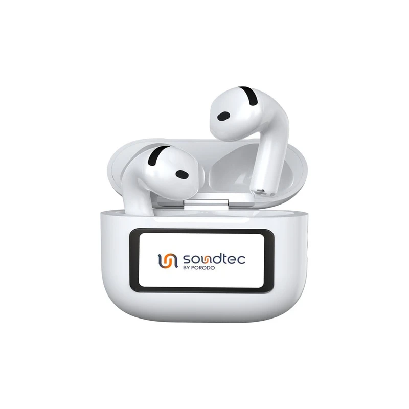 مشخصات خرید و قیمت هندزفری بلوتوثی پورودو هدفون بلوتوثی صفحه نمایش دار پورودو:تجربه گوش دادن به موسیقی با ایرپاد صفحه نمایشدار پرودو مدل Porodo Soundtec Glimpse ANC را به سطحی جدید ببرید! با حذف نویز فعال، صدایی شفاف و بینقص دریافت کنید. طراحی مدرن با صفحه نمایش کاربردی، کنترل آسان و ظاهر شیک را بههمراه دارد. همین حالا خرید کنید و از دنیای جدید موسیقی لذت ببرید!